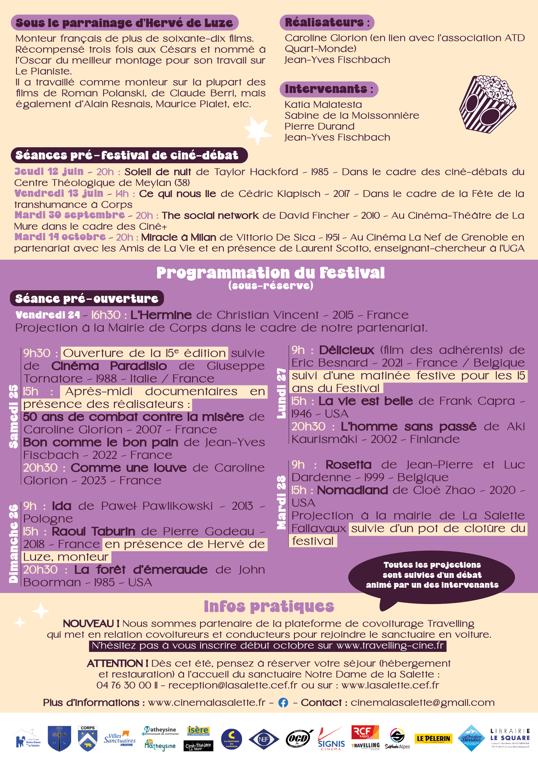 Pour info : avant de s'inscrire, possibilité de voir les séances en tapant la Salette dans la fenêtre " Recherche par film, par cinéma, par ville " sur https://travelling-cine.fr/