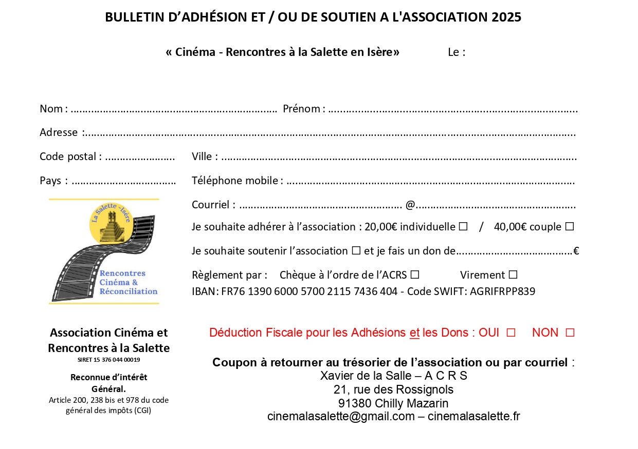 Intitulé du compte | ASSOC CINEMA RENCONTRES A LA SALETTE EN ISERE |